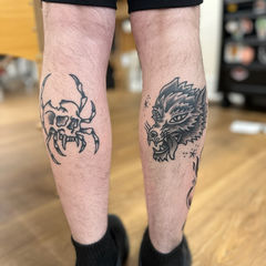 Favorite Styles and Subjects: Traditional and a personal traditional-inspired style featuring lady heads, pin-ups, dark fantasy, and Halloween related imagery, but also enjoys black and gray, finer line, and illustrative styles.